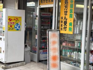ふり返る と 懐かしい 薬局 が。